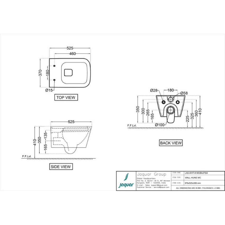 Подвесной унитаз Jaquar Laguna LAS-WHT-91953BIUFSM, безободковый, крышка-сиденье микролифт, цвет белый
