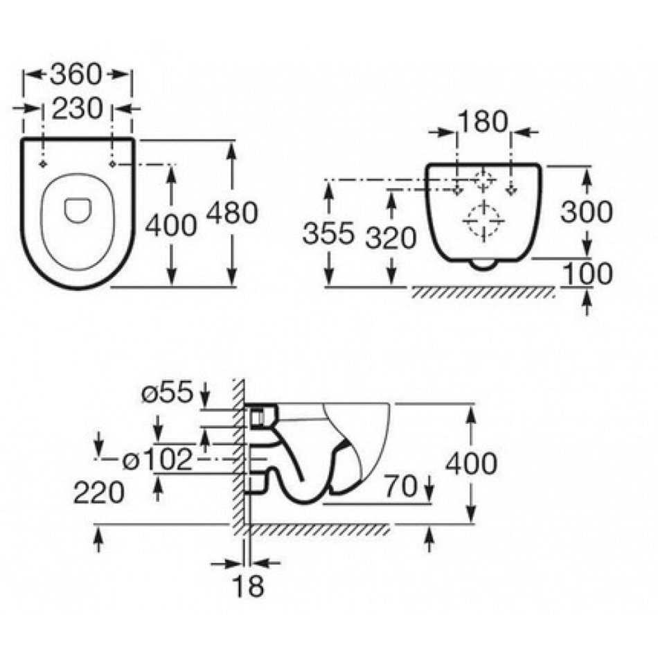 Подвесной унитаз Roca Meridian-N Compact, 48 х 36 см, 346248000