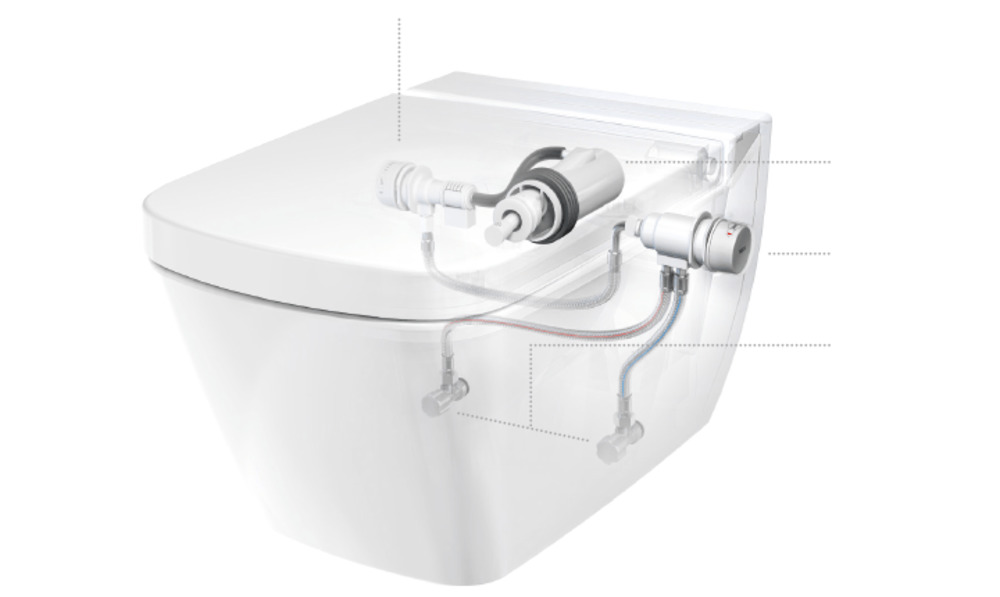 Для функции биде на этапе установки необходимо предусмотреть подключение к системам горячего и холодного водоснабжения.