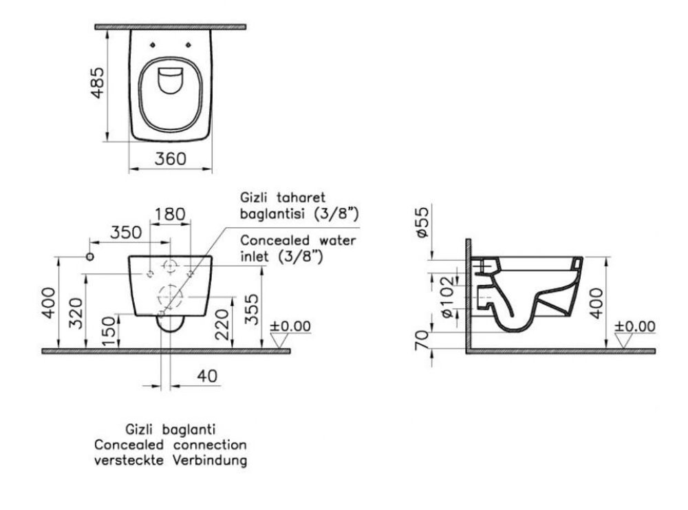 Подвесной унитаз Vitra Metropole VitraClean, укороченный, крышка микролифт, 5671B003-0075/90-003-009