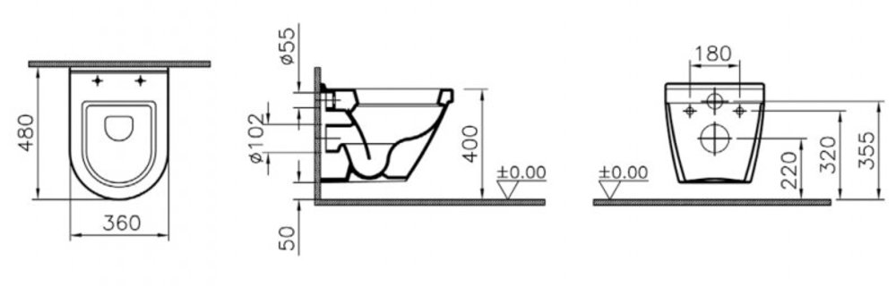 Подвесной унитаз Vitra S50 48 см 5320B003-0075 крышка стандарт