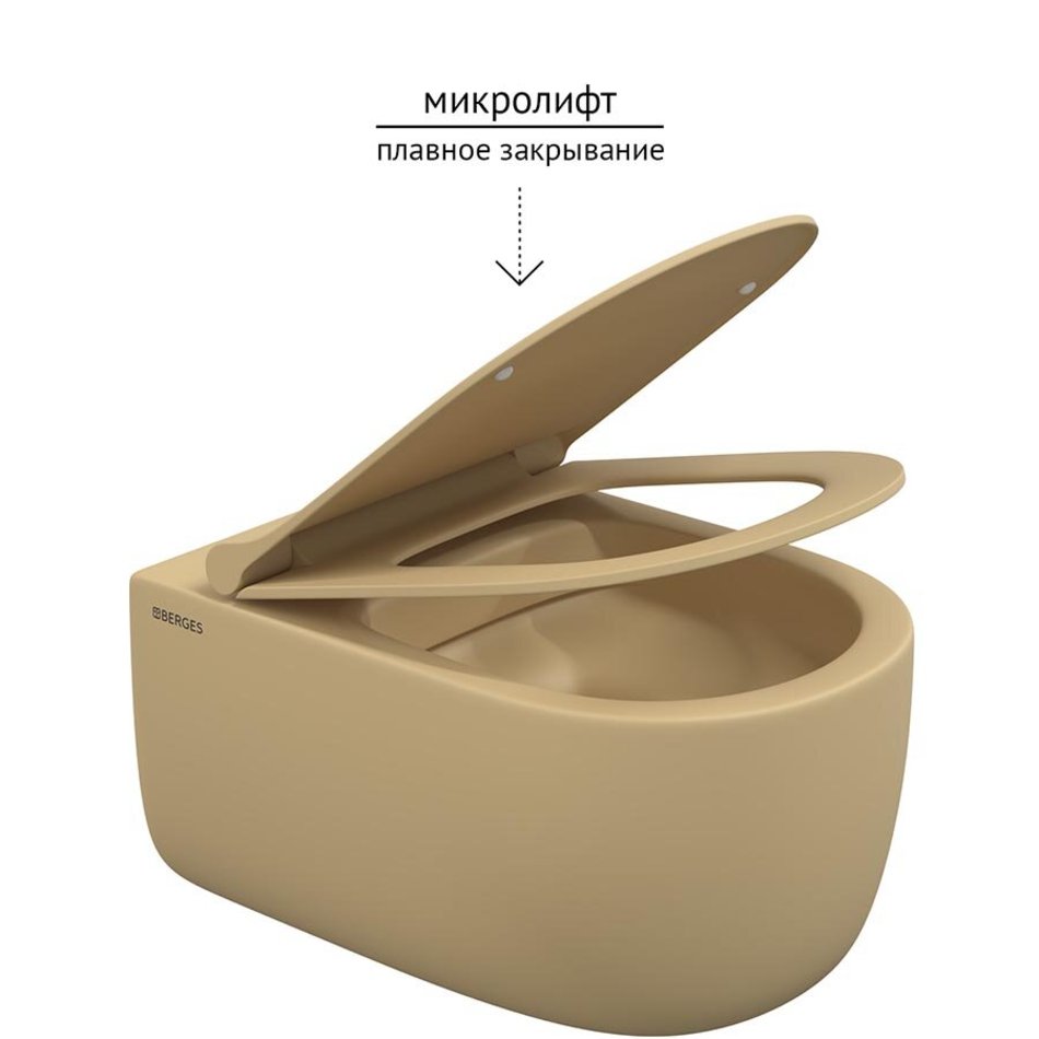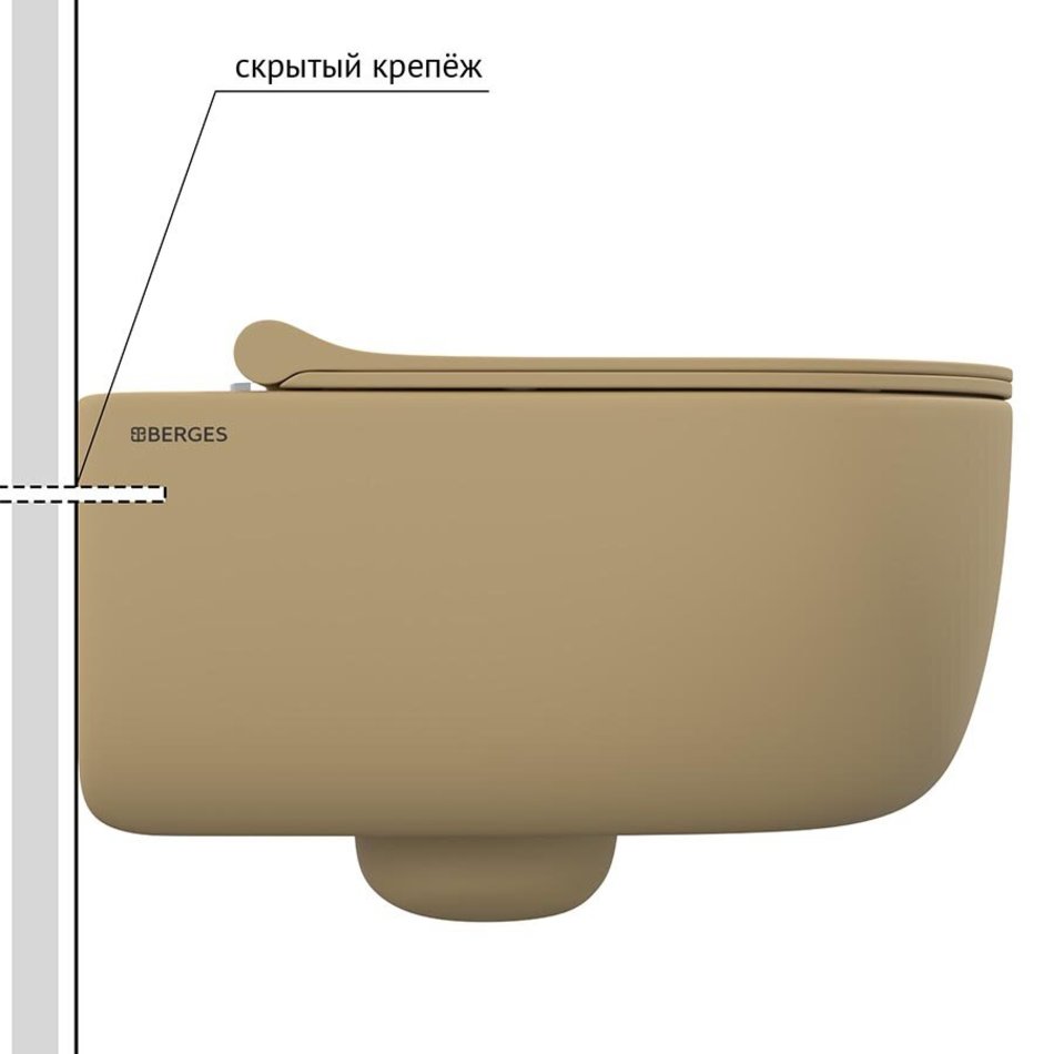 Унитаз BERGES подвесной EGO XL матовый кашемир Rimless 54 см, сиденье EGO XL Slim SO матовый кашемир, микролифт , быстросъем, 083211