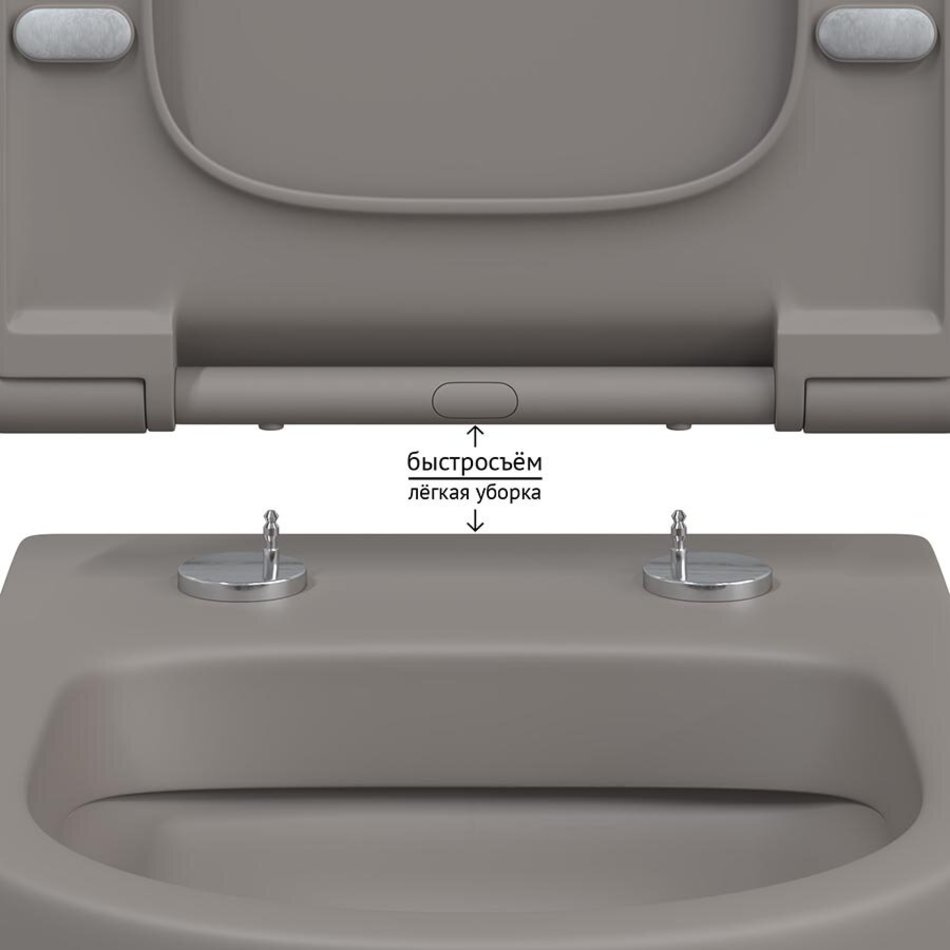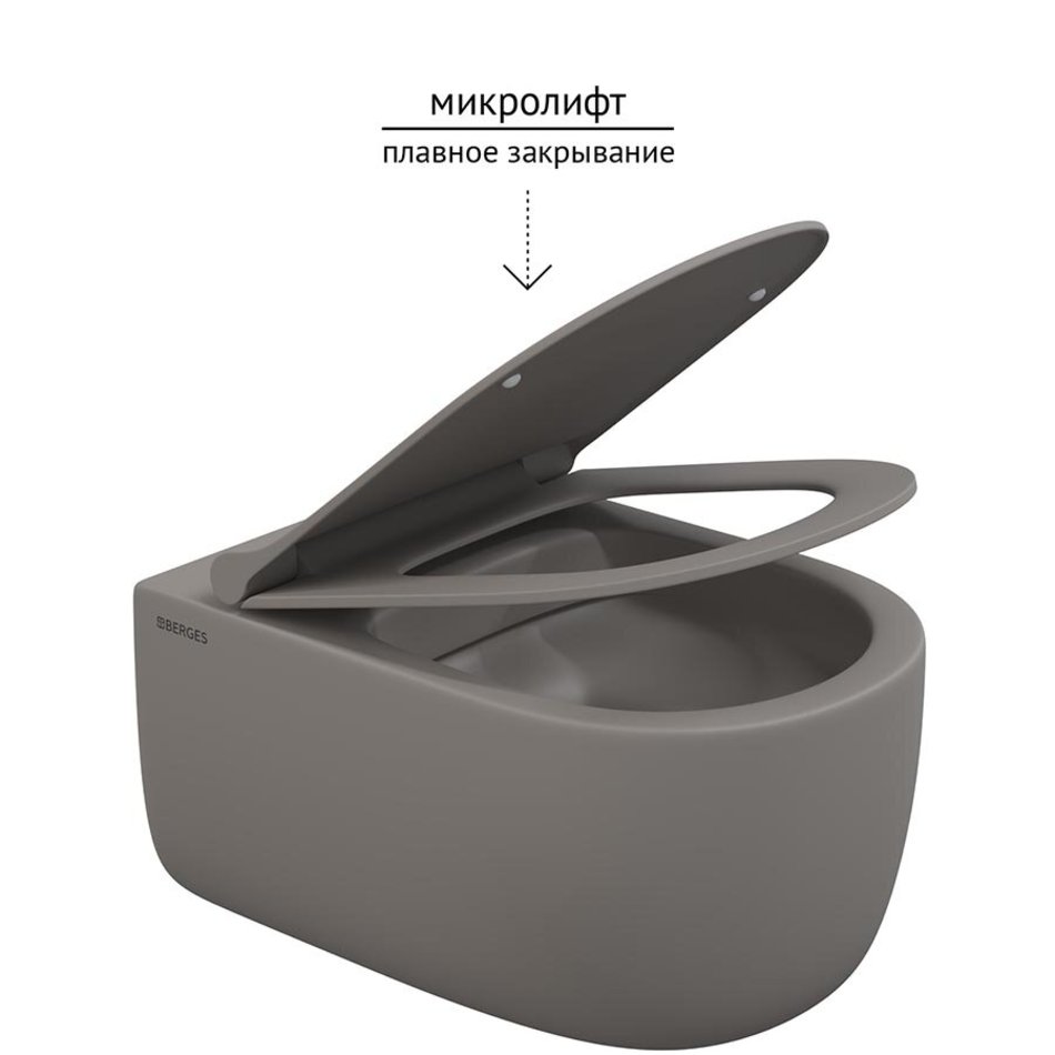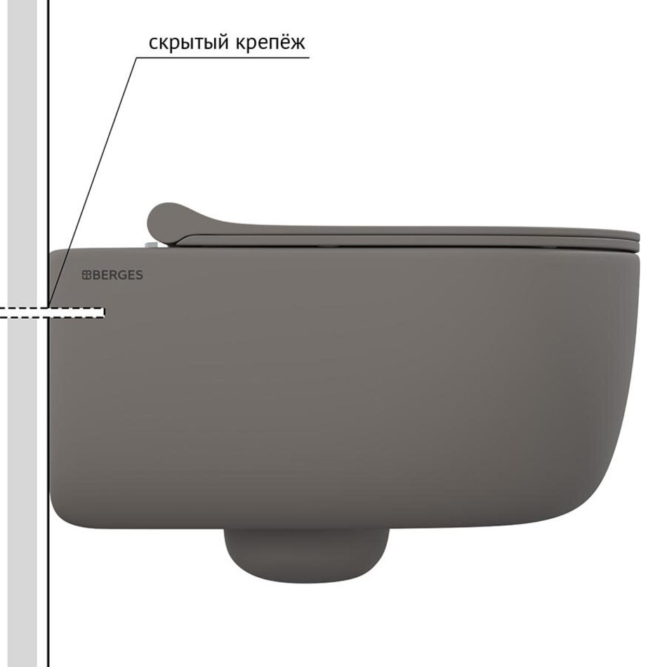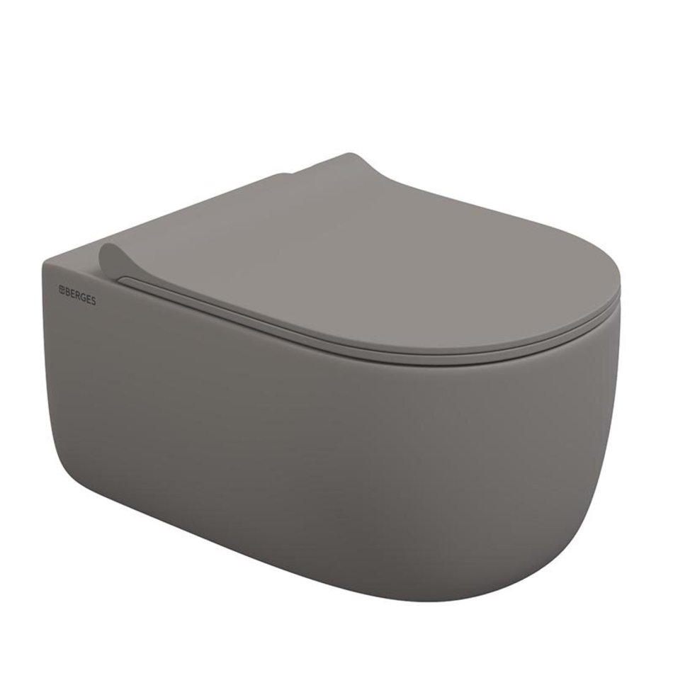 Унитаз BERGES подвесной EGO XL матовый серый Rimless 54 см, сиденье EGO XL Slim SO матовый серый, микролифт , быстросъем, 083216