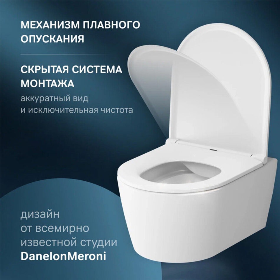 Комплектация: подвесной унитаз с сиденьем и комплектом крепежей.