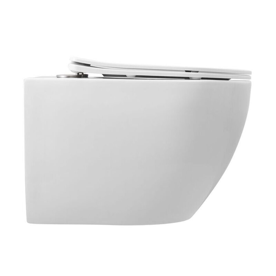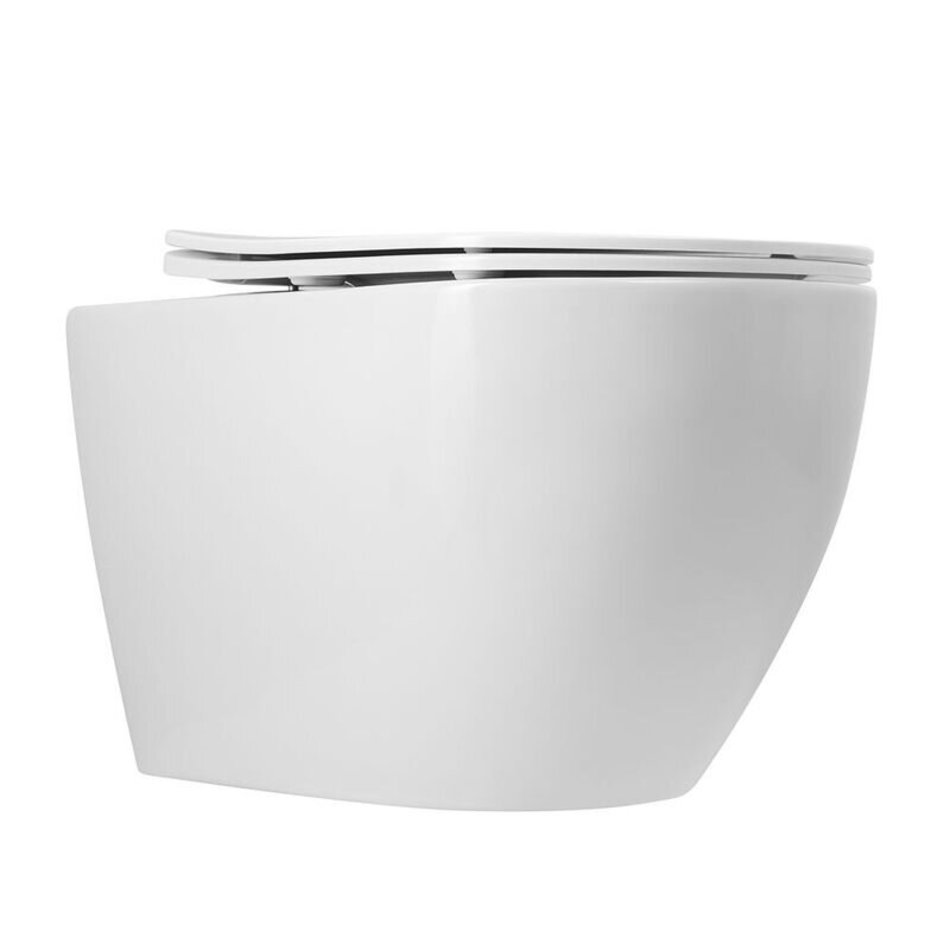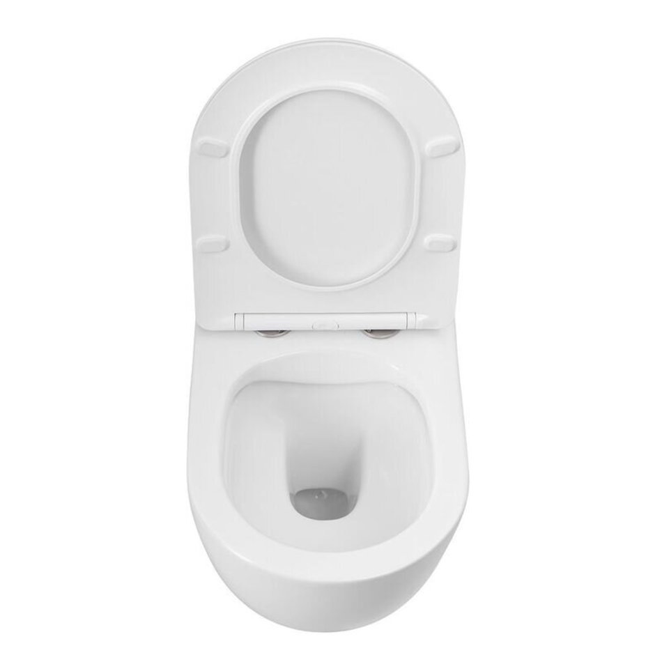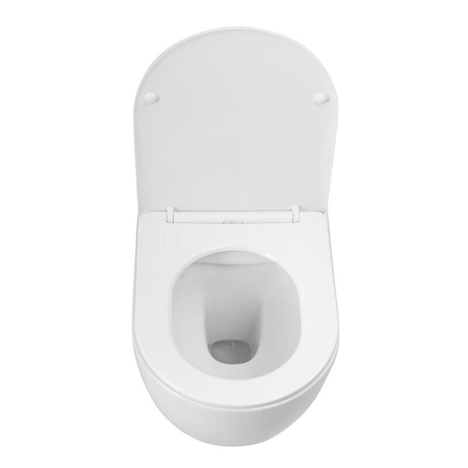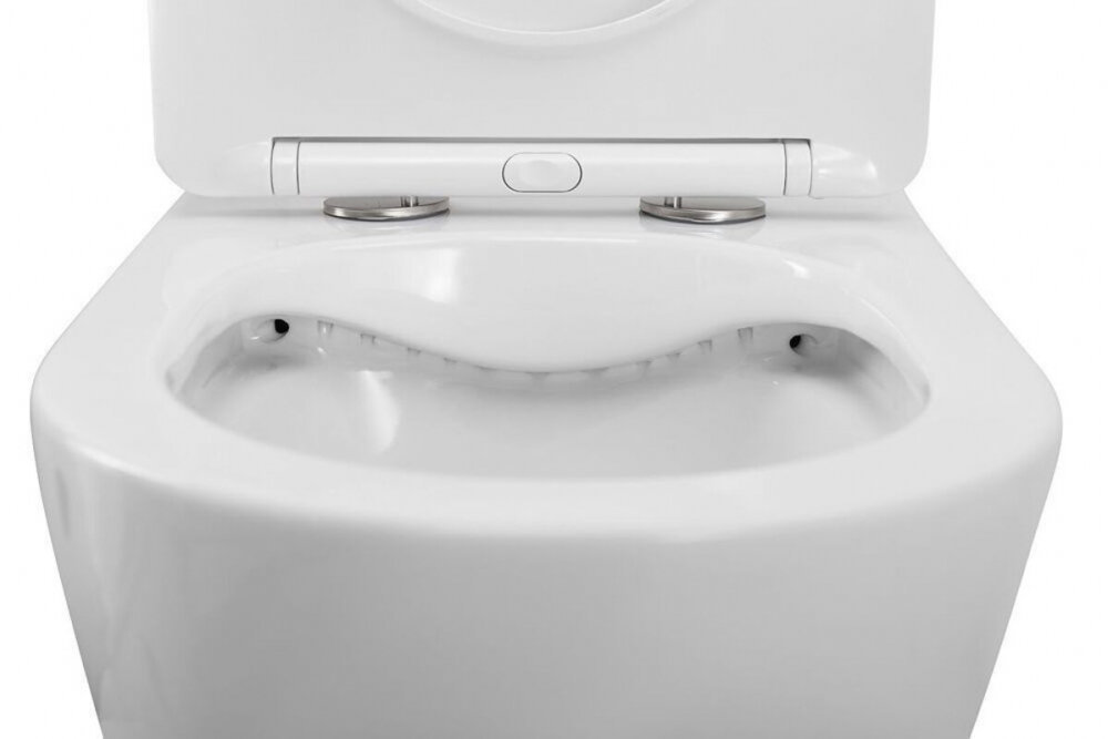 Унитаз подвесной безободковый в комплекте с сиденьем и креплением. Эффективная система смыва, легкая уборка. Совместимость со всеми инсталляциями.