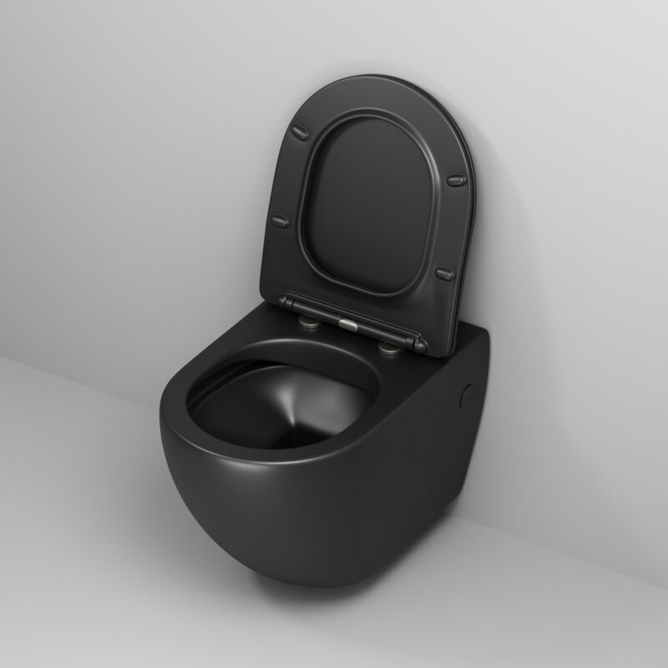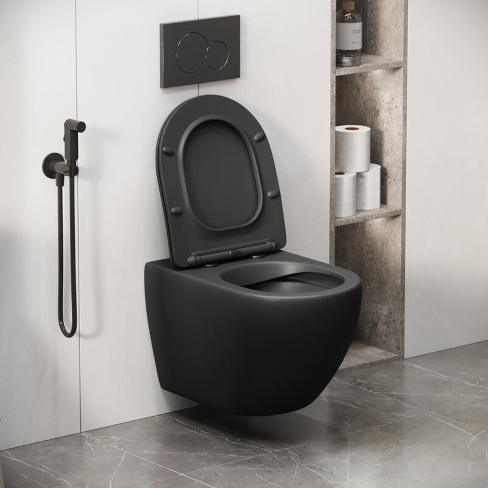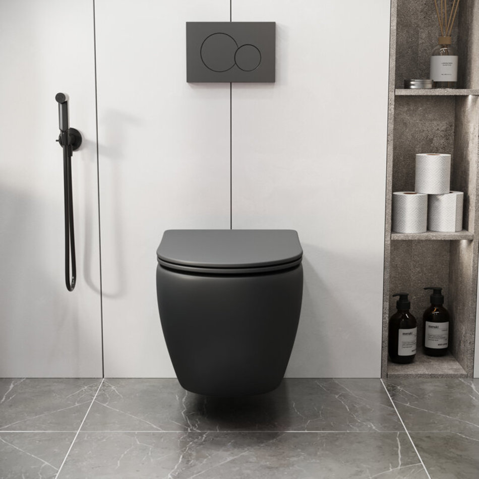 Унитаз подвесной Grossman, безободковый, крышка тонкая микролифт, черный матовый, GR-4411BMS