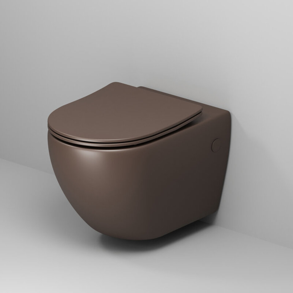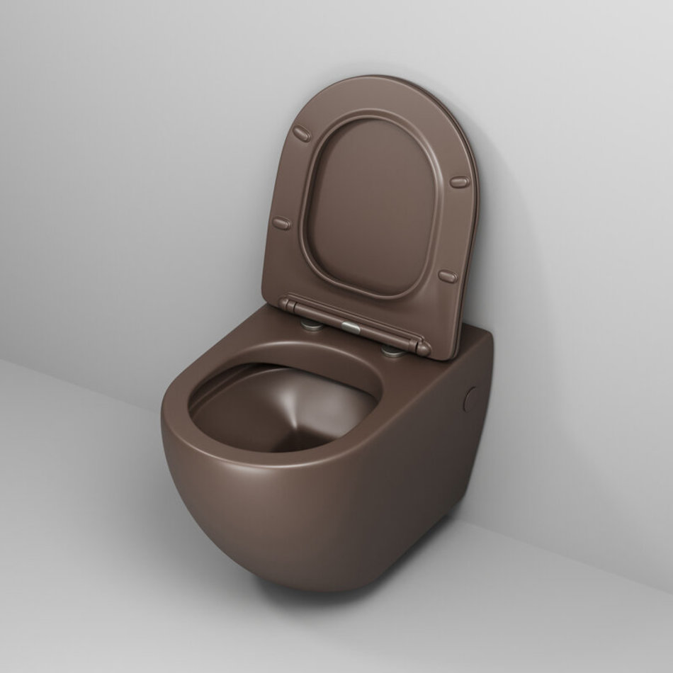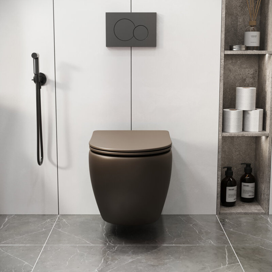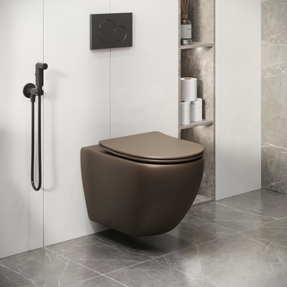Унитаз подвесной Grossman, безободковый, крышка тонкая микролифт, коричневый матовый, GR-4411BRMS