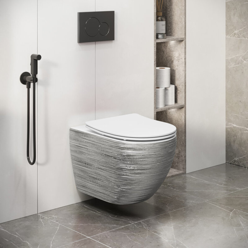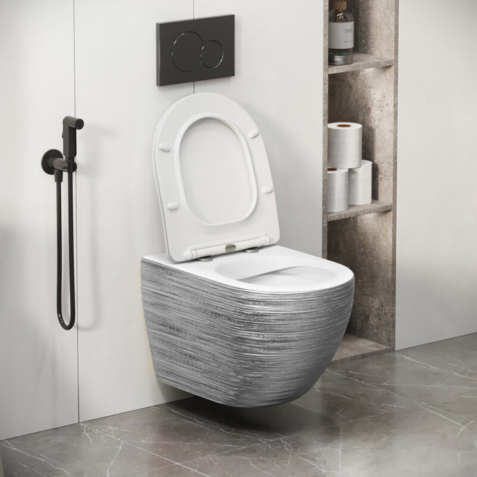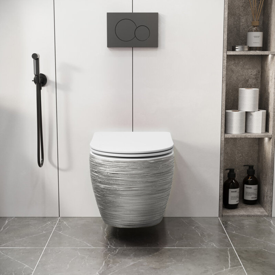 Унитаз подвесной Grossman, безободковый, крышка тонкая микролифт, серебро, GR-4411SWS