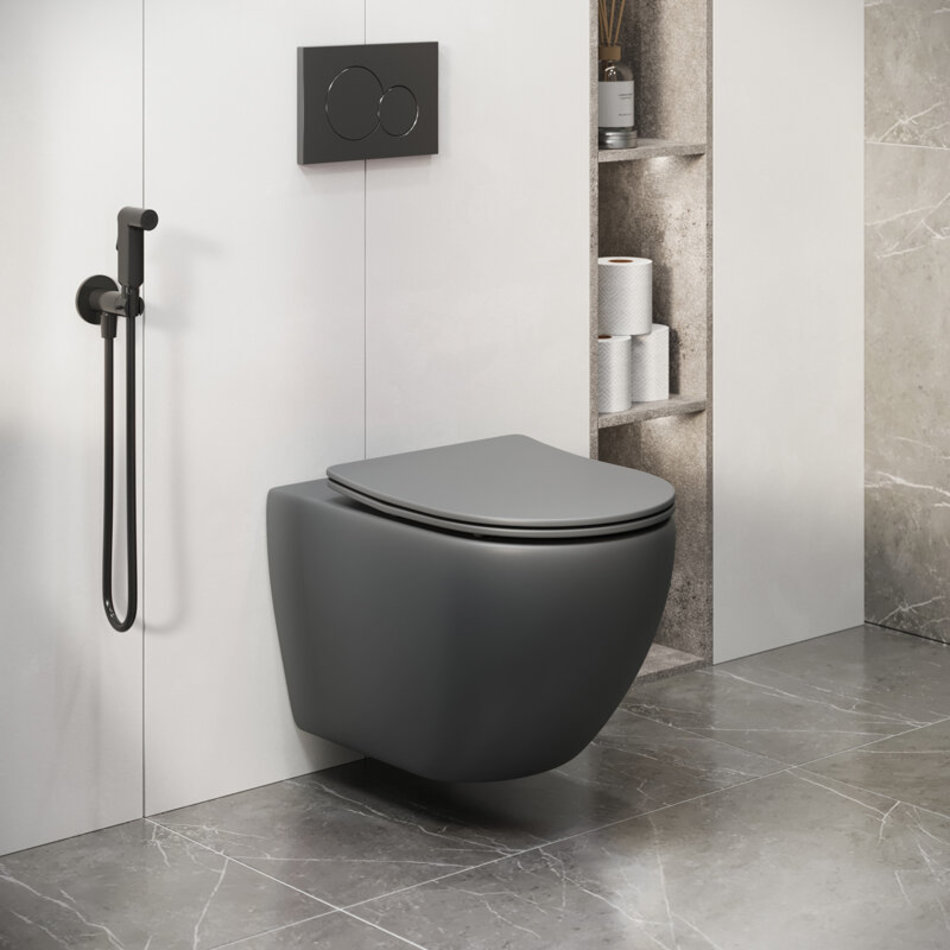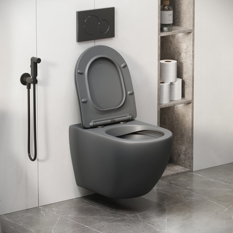 Унитаз подвесной Grossman, безободковый, крышка тонкая микролифт, серый матовый, GR-4411GMS