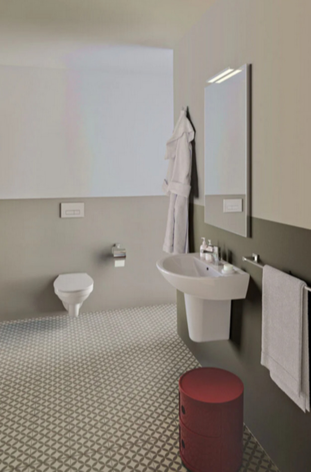 - Конструкция безободкового унитаза облегчает процесс уборки и повышает гигиеничность