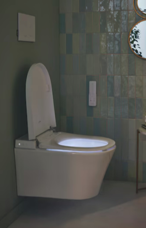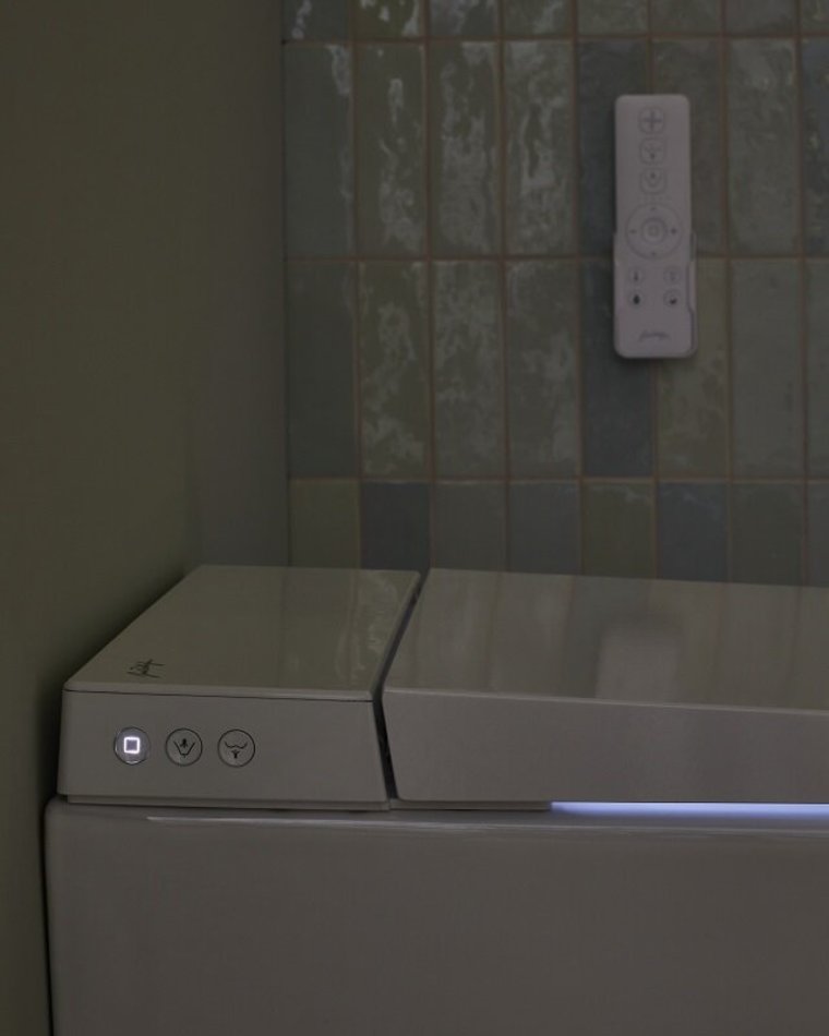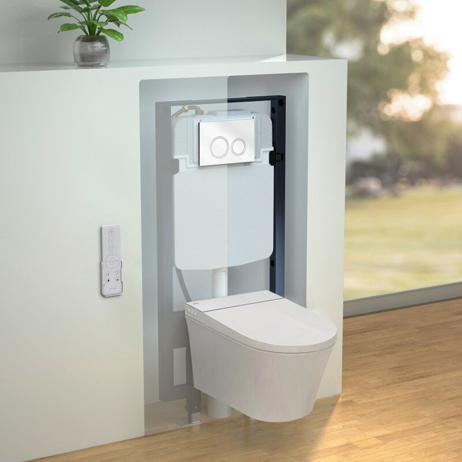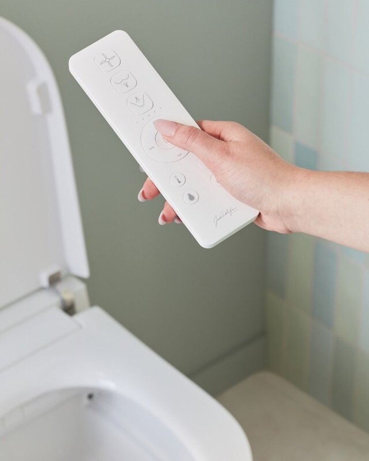 - Унитаз автоматически смывается после использования или на пульте дистанционного управления.