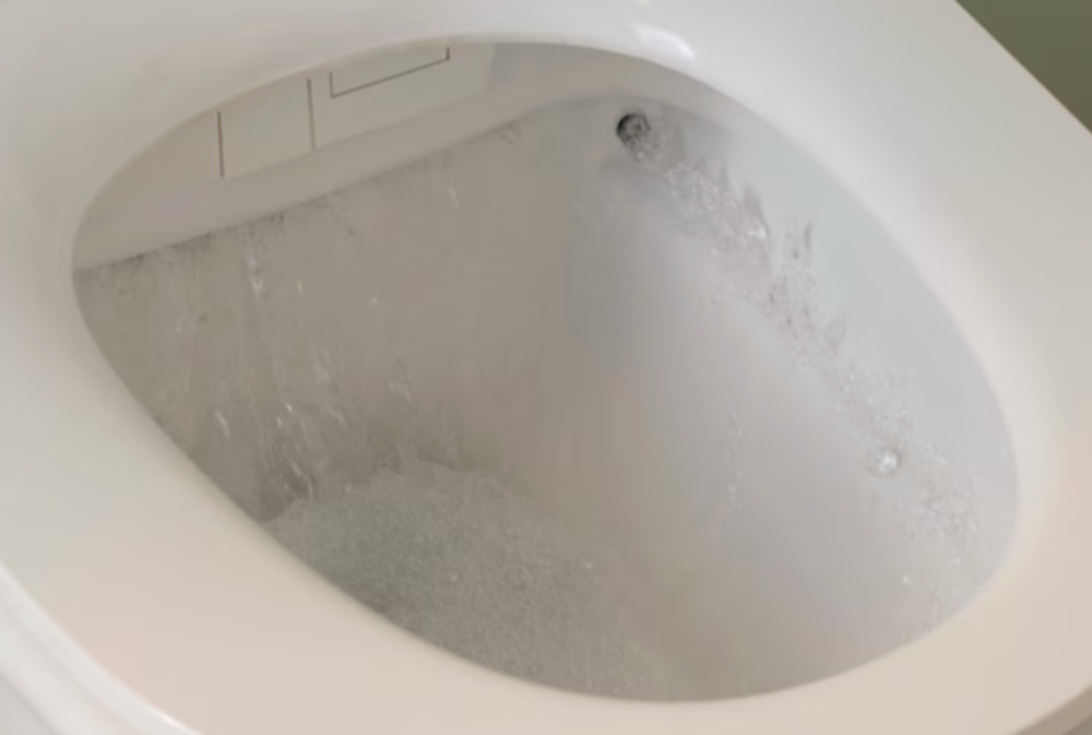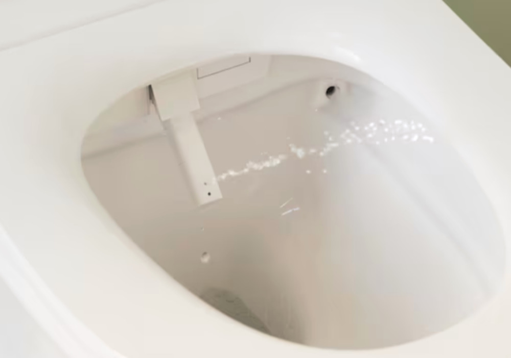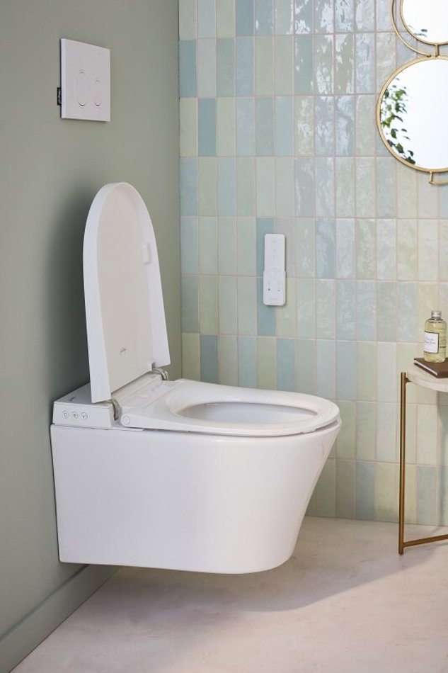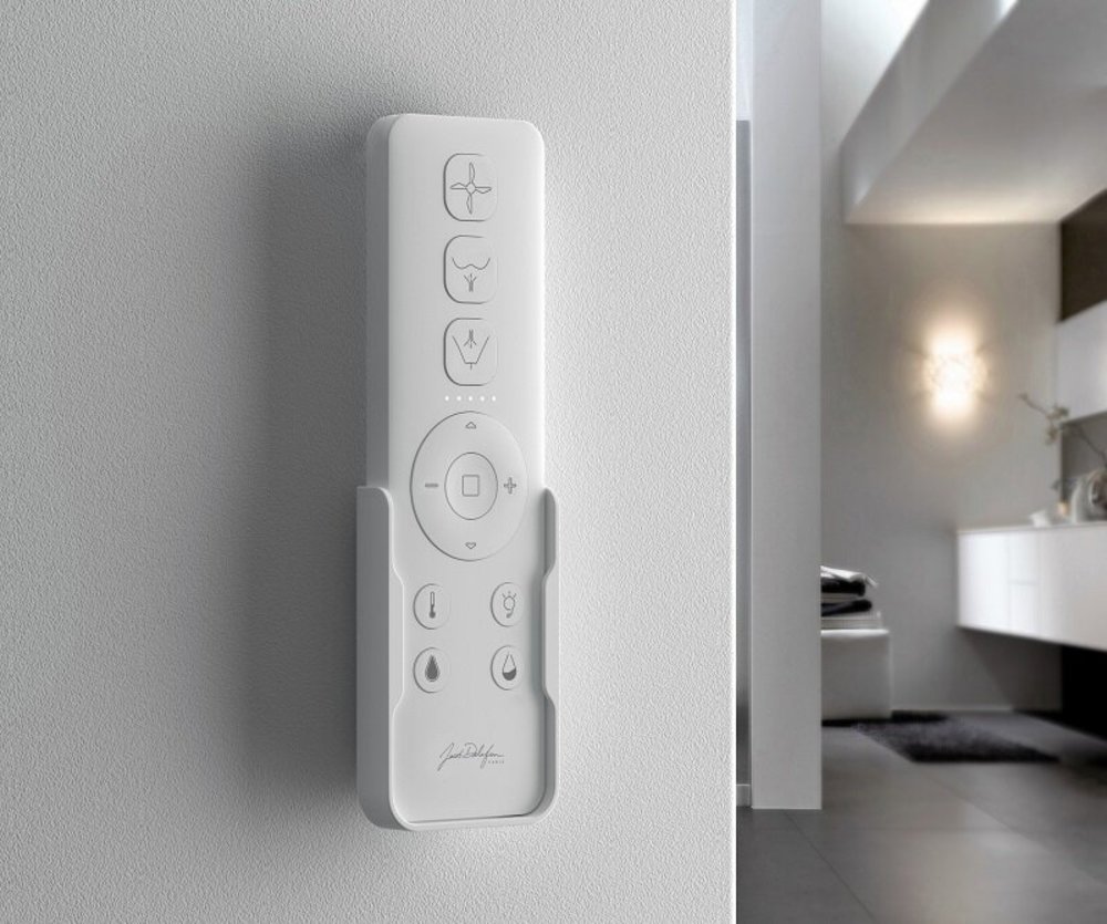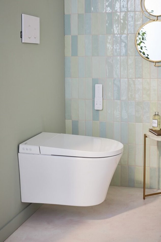 - Унитаз автоматически смывается после использования или на пульте дистанционного управления.