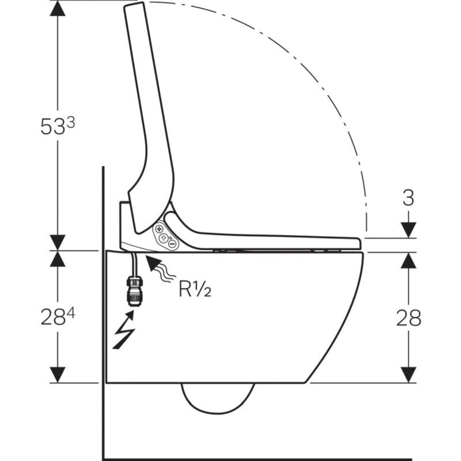 - Штуцер для омывания с приложением Geberit AquaClean, регулируется по пяти позициям