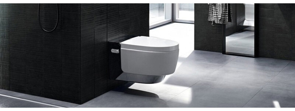 Электронный унитаз подвесной Geberit AquaClean mera comfort 146.214.21.1 с функцией биде и системой удаления запахов, цвет глянцевый хром