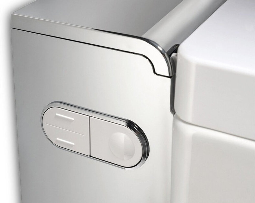 - Электропитание от сети с трехжильным гибким кабелем в защитной оболочке, скрыто сбоку справа за санфаянсом