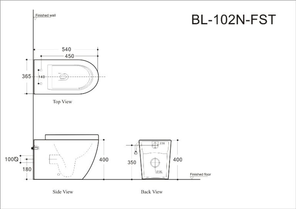 Приставной унитаз Aquanet Cetus-F BL-102N-FST (203344) Rimless, с крышкой-сиденьем Soft Close - Slimseat BL-005, безободковый