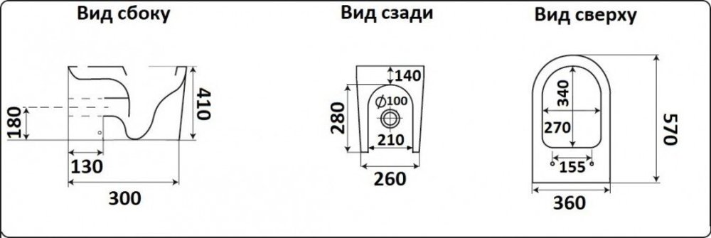 Приставной унитаз CeramaLux NS 3176 36 х 57 х 41 см безободковый, сиденье DP, Soft Close, белый