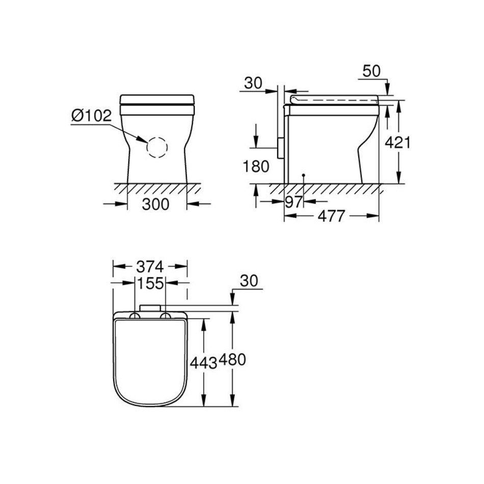 Приставной унитаз Grohe Euro Ceramic 39555000, крышка микролифт