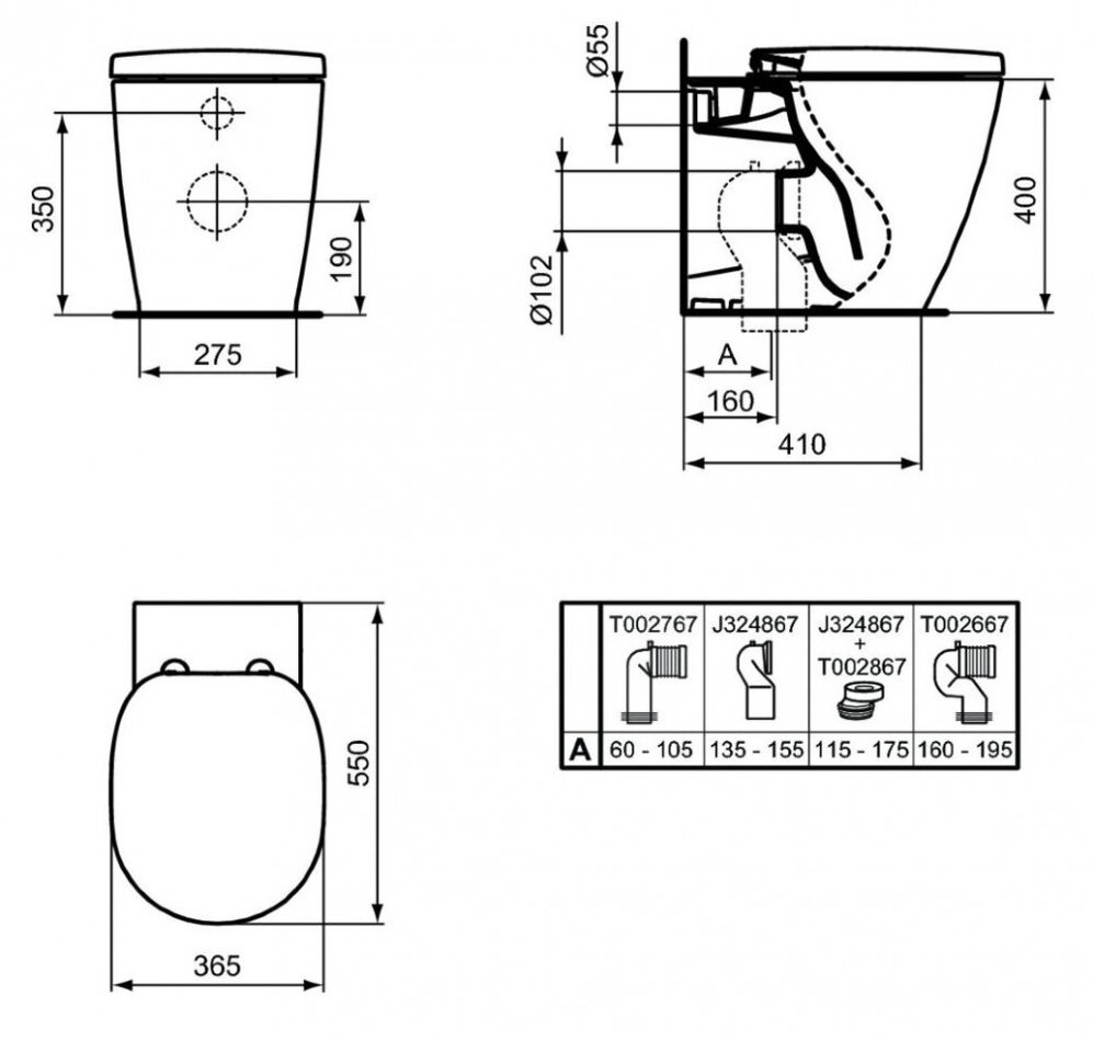 Для монтажа с сиденьем и крышкой E712801/E712701 (обычное) или E772301/E772401 (тонкое), заказывается дополнительно.