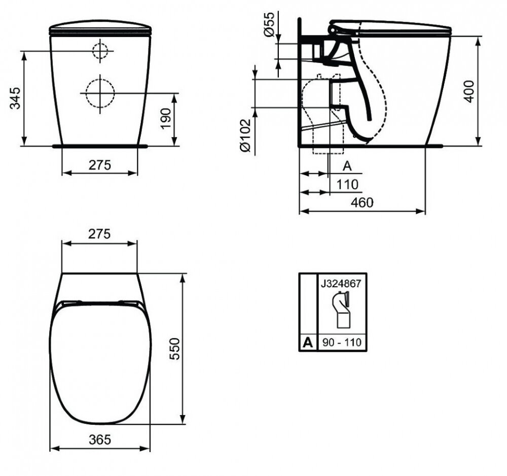 Приставной унитаз Ideal Standard Dea AquaBlade белый, сиденье стандарт, T349001/T676601