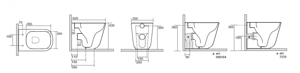 Приставной унитаз Kerasan Tribeca 55 511801bi безободковый