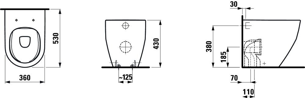 Приставной унитаз Laufen Pro Rimless 8.2295.6.000.000.1, вертикальный слив в пол, белый