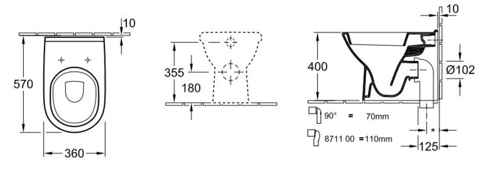 Приставной унитаз Villeroy&Boch O.novo 5657 10 35*57 см (56571001/5657 10R1)