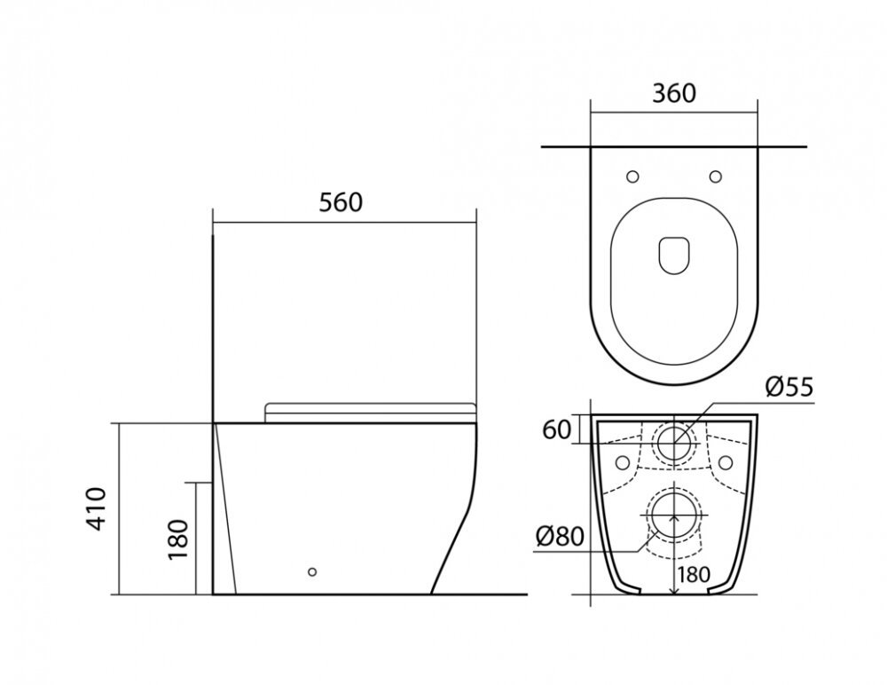 - Чаша унитаза безободковая.
