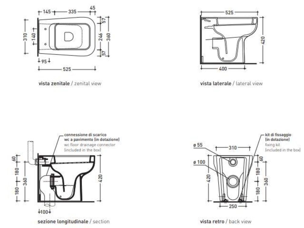 Унитаз напольный Flaminia Como CM117, вертикальный слив в пол, цвет белый