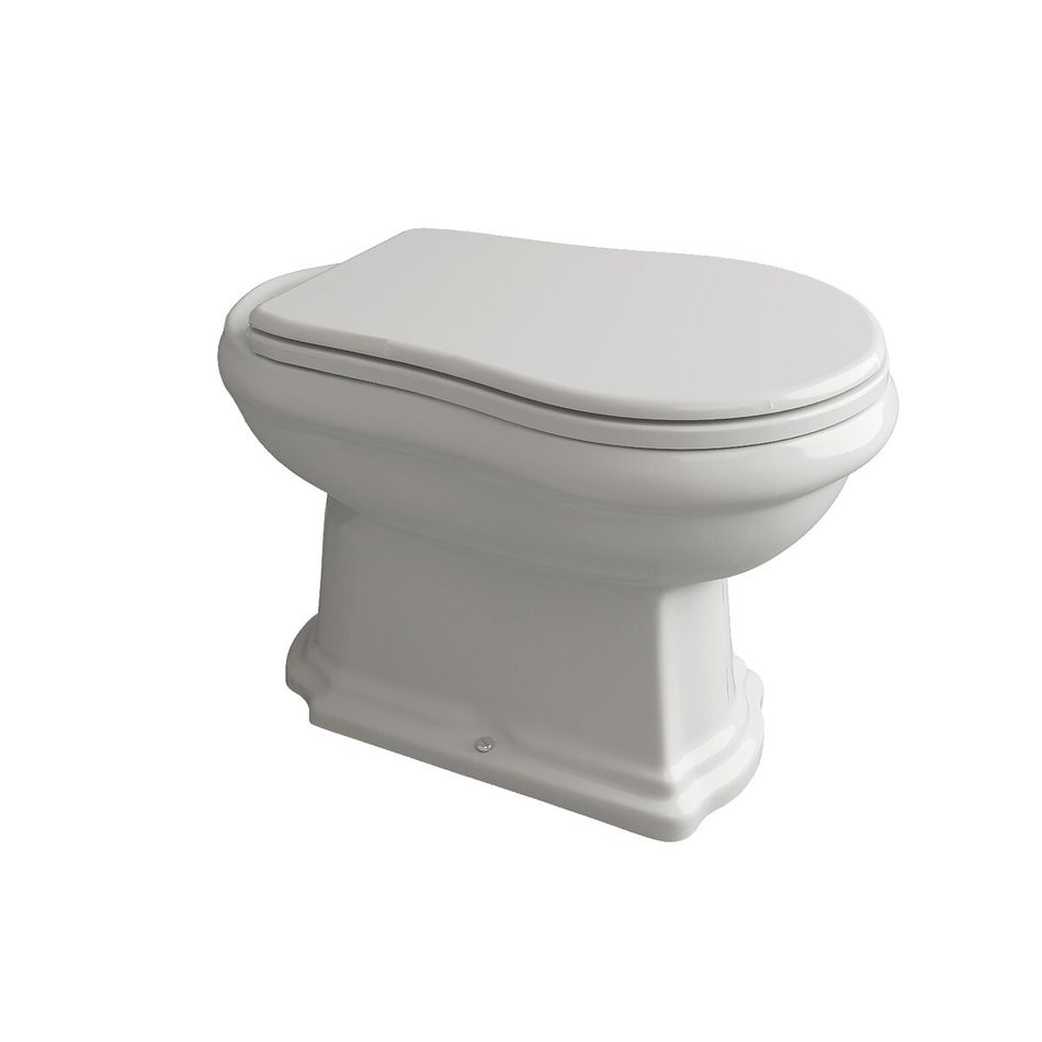 KERASAN Retro 101101 напольный унитаз 53*38 см, приставной к стене (белый глянцевый): без керамического бачка (для монтажа со скрытым внутристенным бачком, керамическим бачком на короткой или высокой трубе), с вертикальным выпуском в пол, цвет - белый (глянцевый).