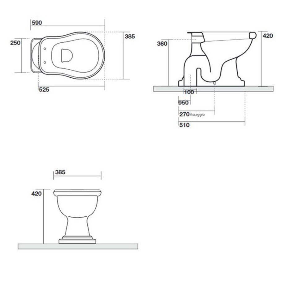 Унитаз напольный Kerasan Retro 101001, вертикальный слив в пол, цвет белый