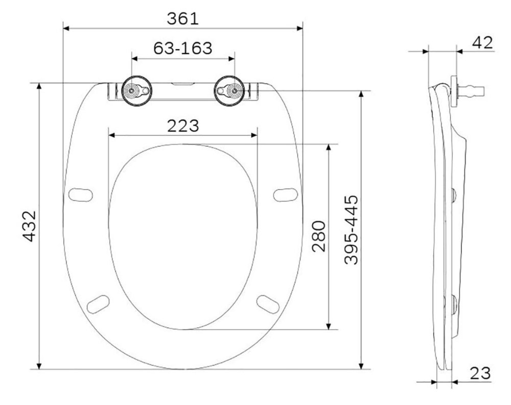 Быстросъемное сиденье из дюропласта с механизмом плавного закрывания в актуальном тонком дизайне. Материал сиденья дюропласт, устойчивый к появлению царапин, в сочетании с креплениями из нержавеющей гарантируют договечность сиденья. Механизм плавного опускания, рассчитанный на 100 000 закрываний, и быстрого снятия - комфорт в использовании и легкость в уходе за сиденьем и керамикой.