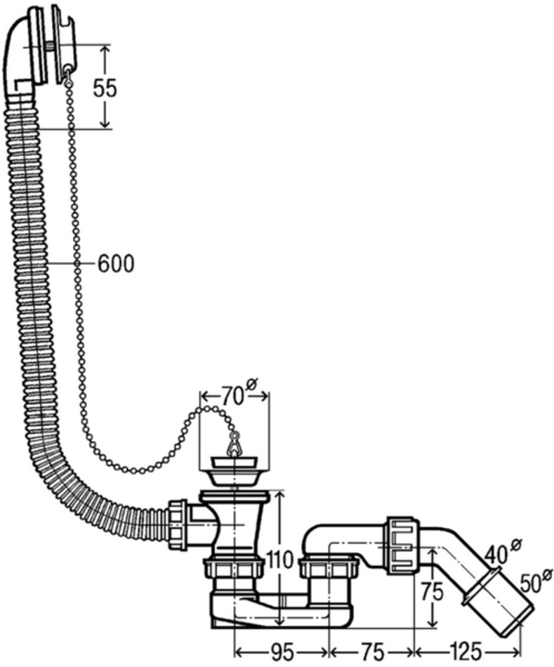 Слив-перелив Viega Simplex мод. 6387.35, 311537, с цепочкой, стандартный