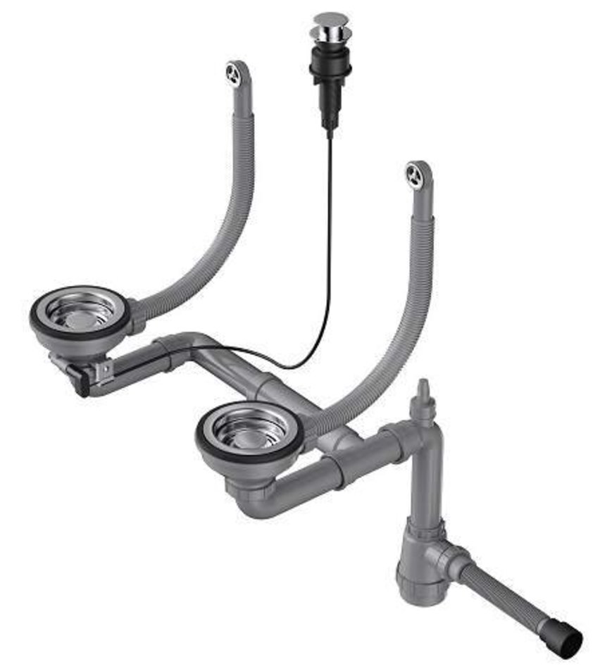 - Арматура для двухчашевых моек с круглыми переливами, декоративными решетками и клапаном-автомат