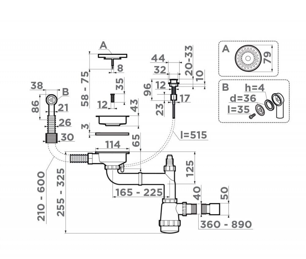 - Арматура с клапаном для одночашевых моек WK-1CL-R с круглым переливом