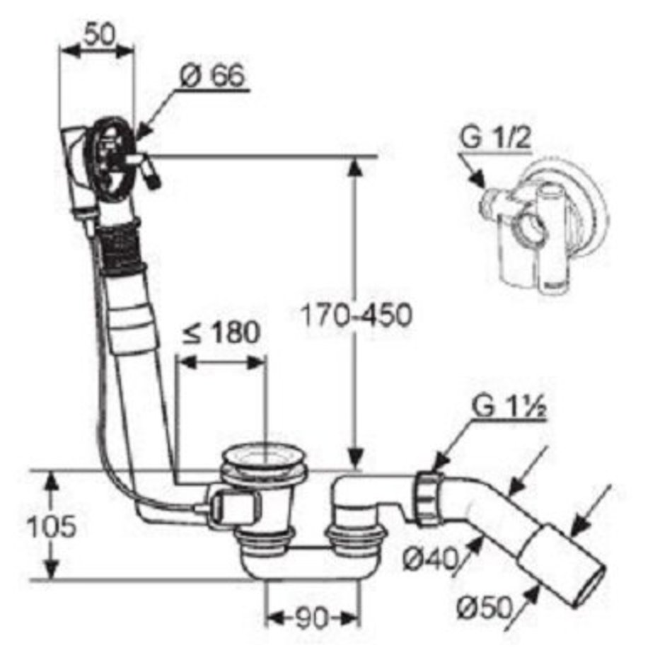 Cлив-перелив Kludi Rotexa 213150000, с функцией наполнения