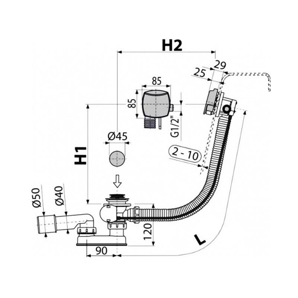 Слив-перелив AlcaPlast A564ANTIC с наливом через перелив, цвет - античное золото