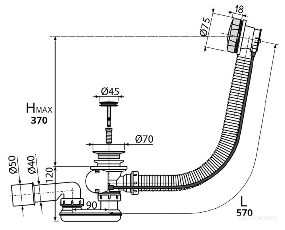 Слив перелив Alpen, белый, ALP55-RU60