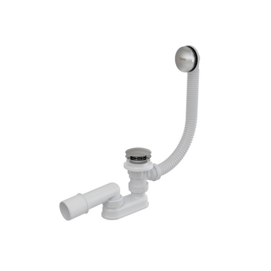 Вы можете выбрать сточный комплект для ванны с переливом длиной 570 мм или 800 мм с управлением сливом при помощи тросика или механизмом Click-Clack.