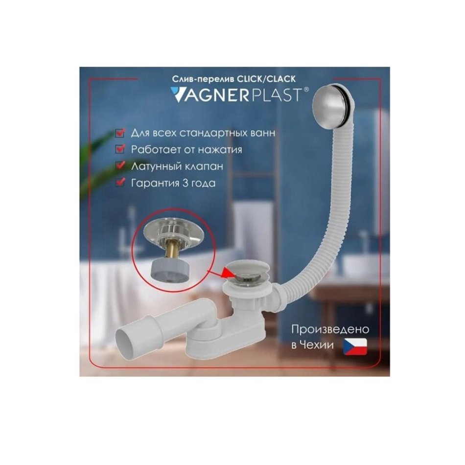 Слив-перелив для ванны Vagnerplast click/clack, хром, VPWAS0012-61