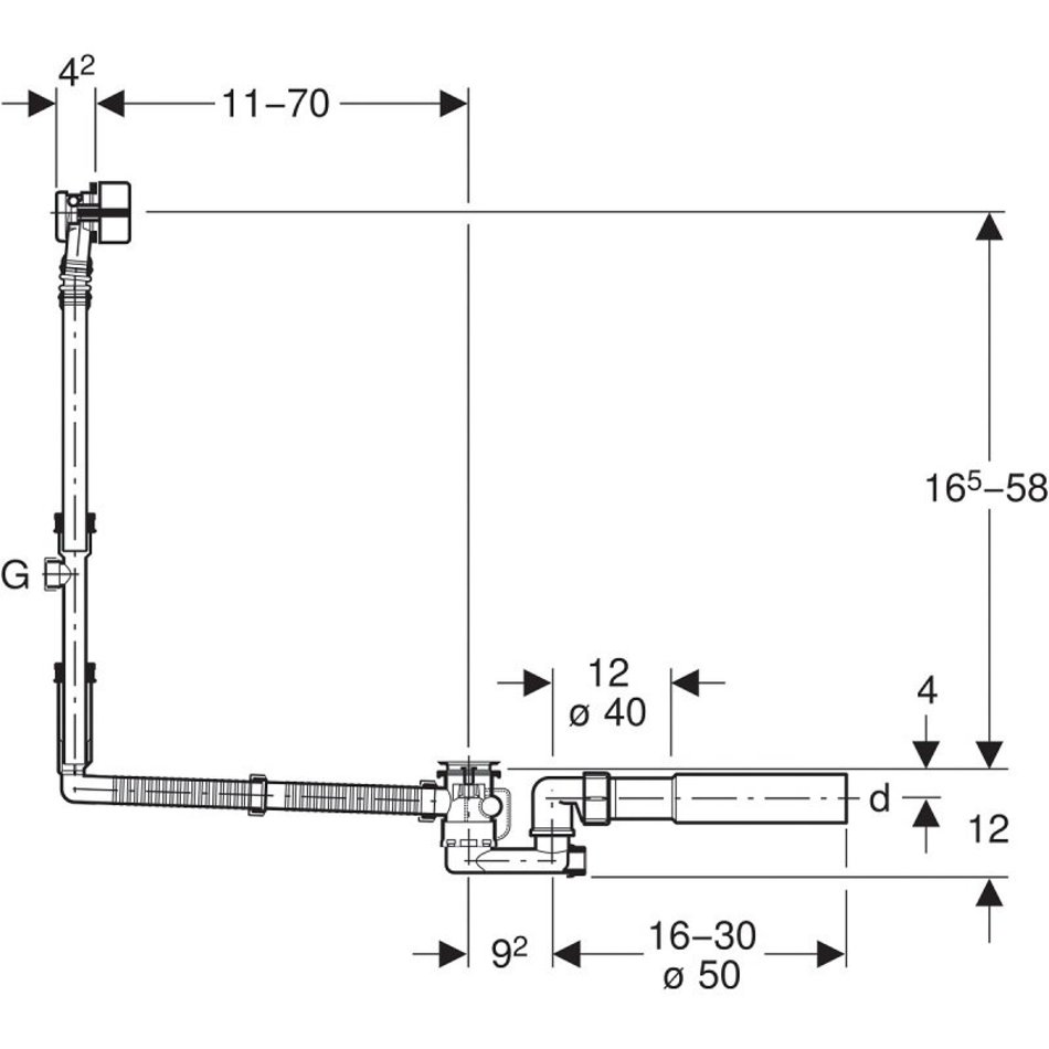 Слив-перелив Geberit для ванны, с наливом, удлинённый, хром глянцевый, 150.711.21.1