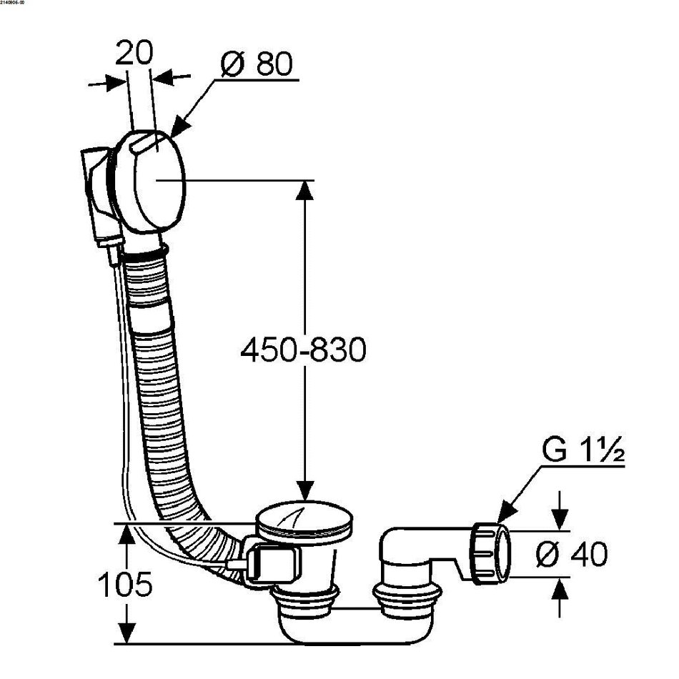 Слив-перелив Kludi Rotexa 2000, удлиненный для нестандартных ванн, 2140905-00