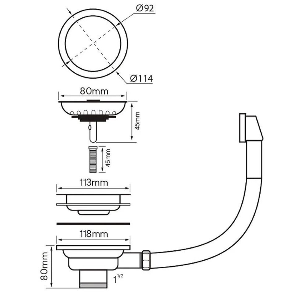 Слив-перелив Paulmark для кухонной мойки, брашированное золото, PM2022-BG
