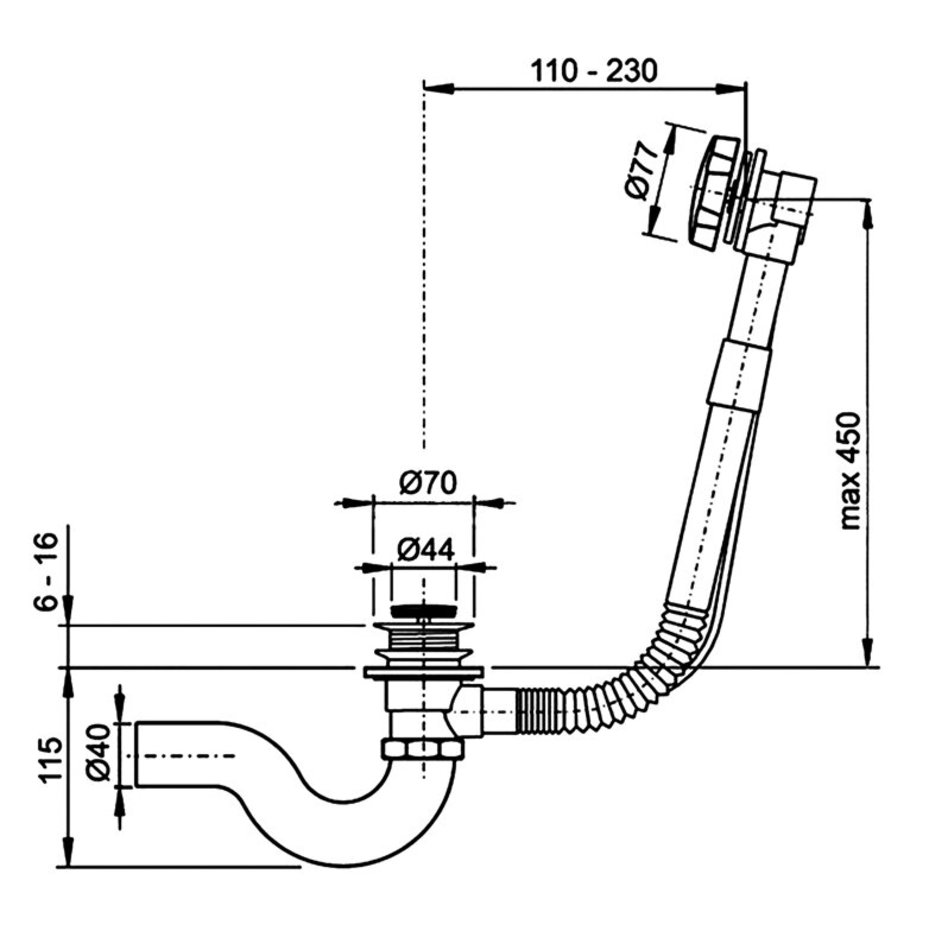 - Корпус слив перелив с раздвижной соединительной трубкой (латунь, медь) - 1 шт.