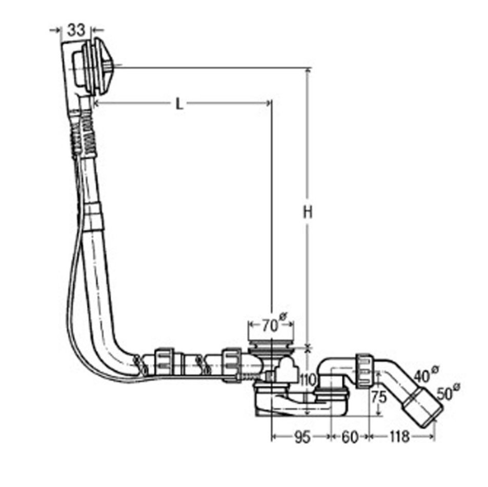 - Диаметр сливного отверстия ванны: 52 мм