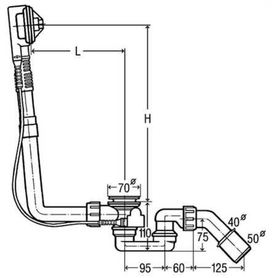 - BWL = длина троса приводного механизма - 560 мм