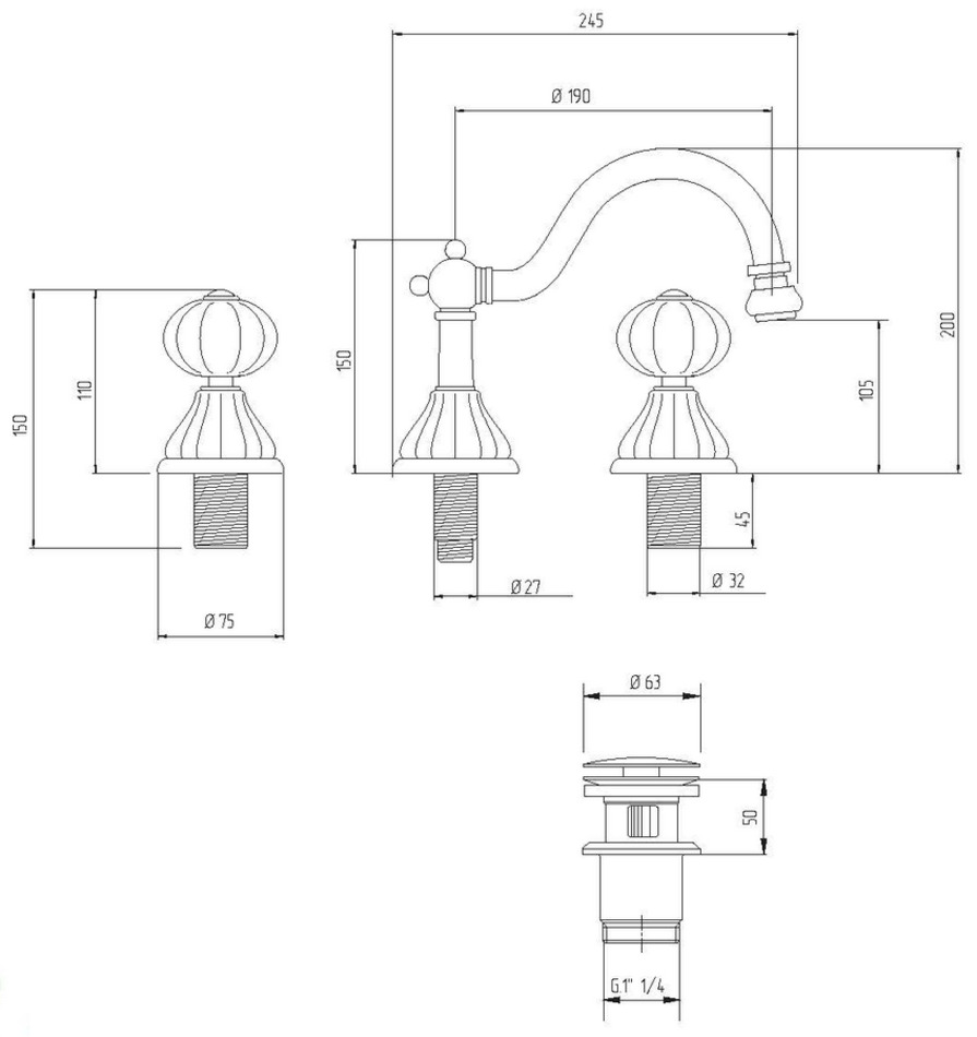 Cмеситель Migliore Olivia 19002 для биде, хром, ручки белая керамика