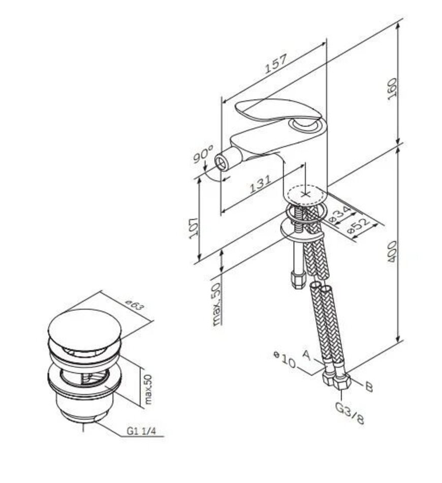 Смеситель Am.Pm Sensation F3083164 для биде, с донным клапаном (выставочный образец)