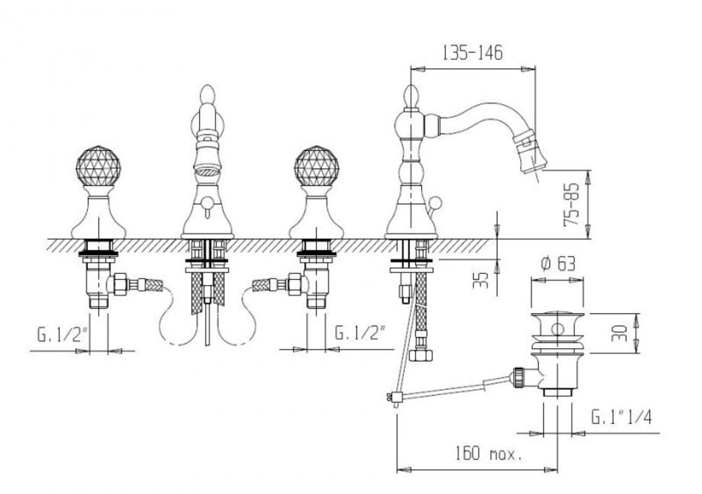 Смеситель Cezares Atlantis-Nostalgia BBS2-03/24 цвет золото