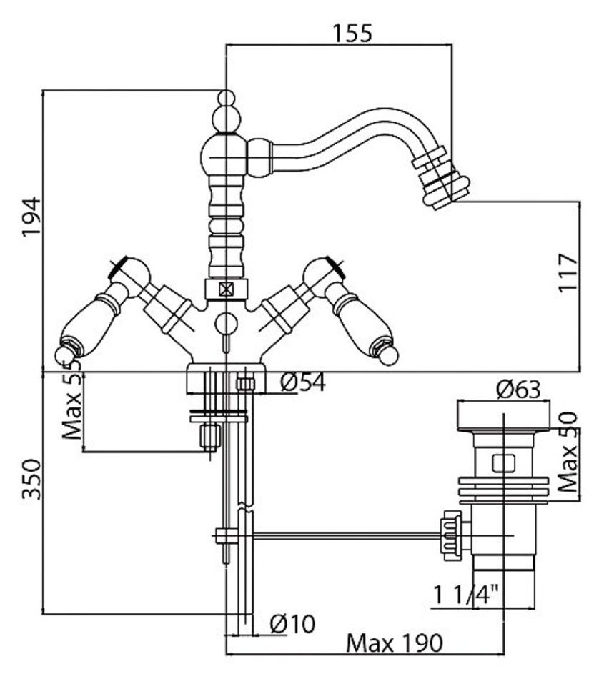 Смеситель Cezares DIAMOND-BS2-03-Sw, золото, ручки Swarovski
